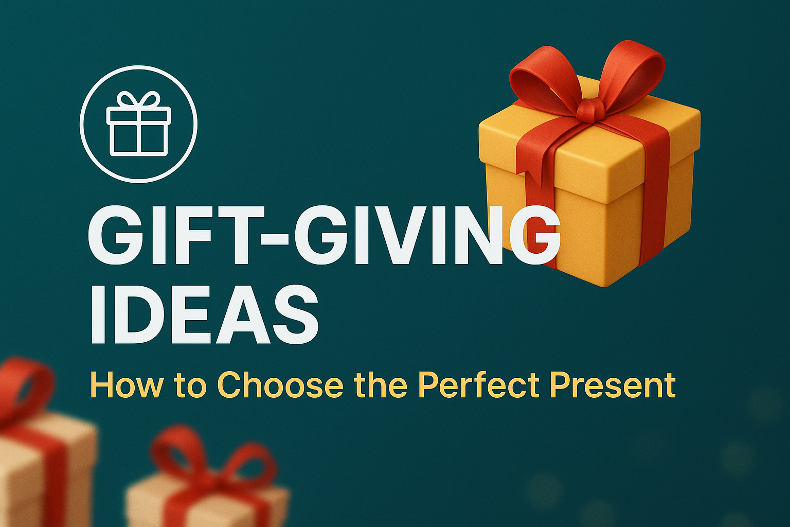 Engaging graphic designed for gift-giving ideas, featuring a present icon and modern typography. Ideal for blog posts or social media content.