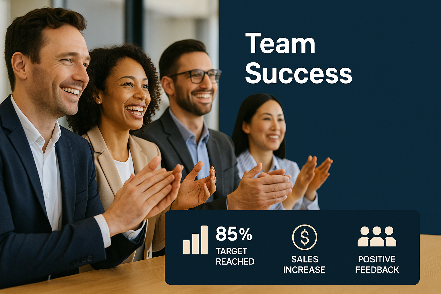 Professional corporate image depicting a diverse team celebrating success, featuring a modern design suitable for business presentations and motivational content.