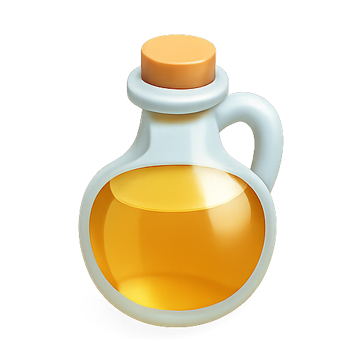 A visually appealing illustration of a stylized glass oil bottle featuring a vibrant orange cap. Ideal for culinary or health-related designs.