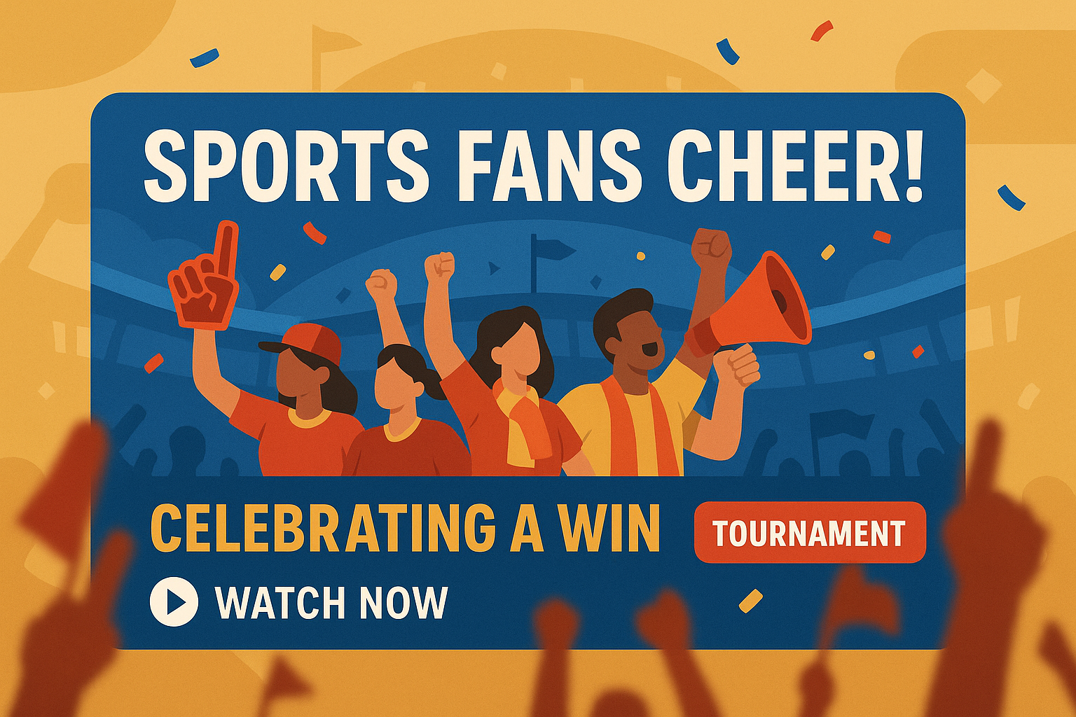 Vibrant promotional graphic showcasing enthusiastic sports fans celebrating a victory, designed for tournament marketing and event announcements.