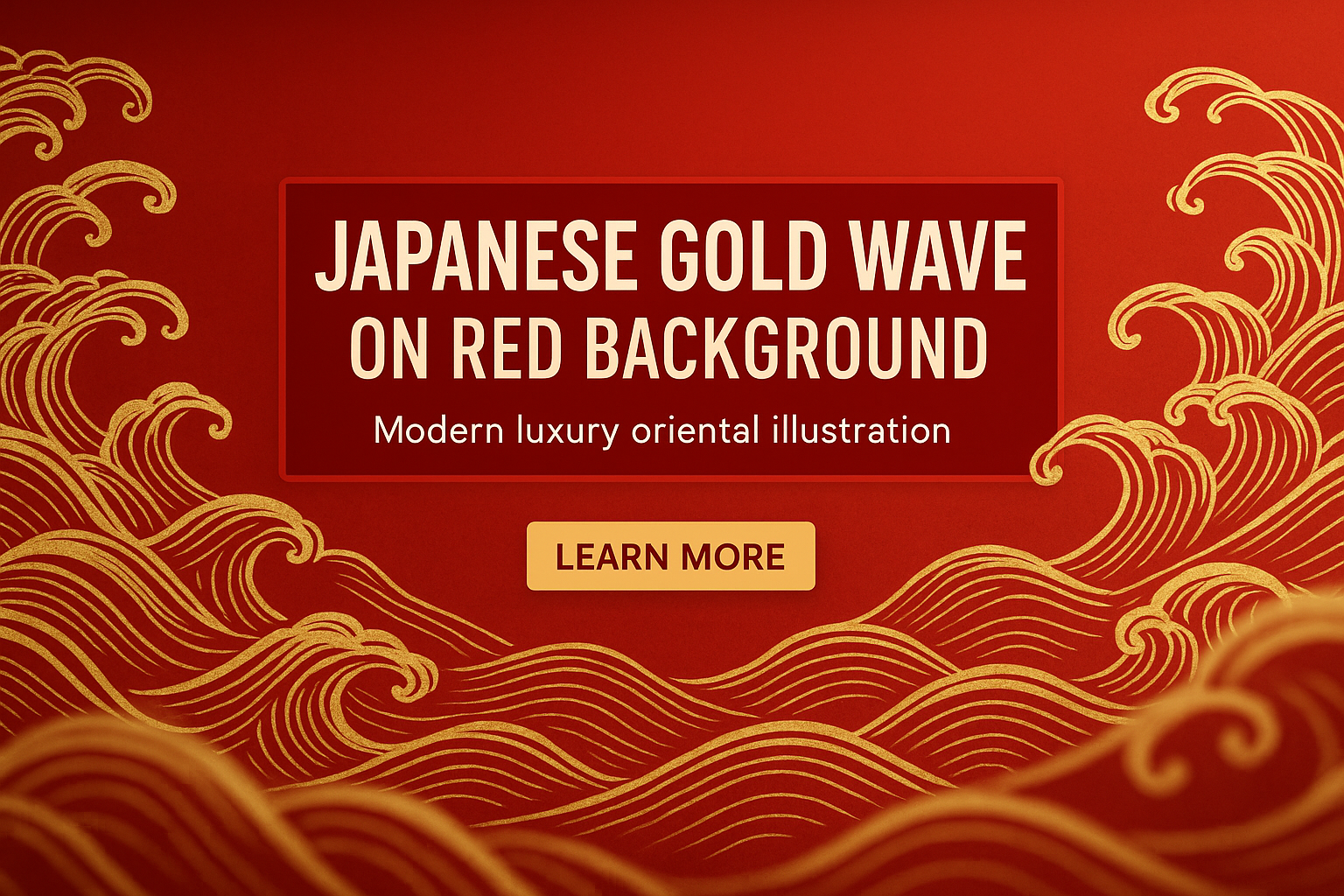 /Collection: /by davooda/Type: PNG/Stylized illustration featuring golden waves on a vibrant red background. Ideal for luxury branding or cultural-themed projects, showcasing a modern oriental aesthetic.