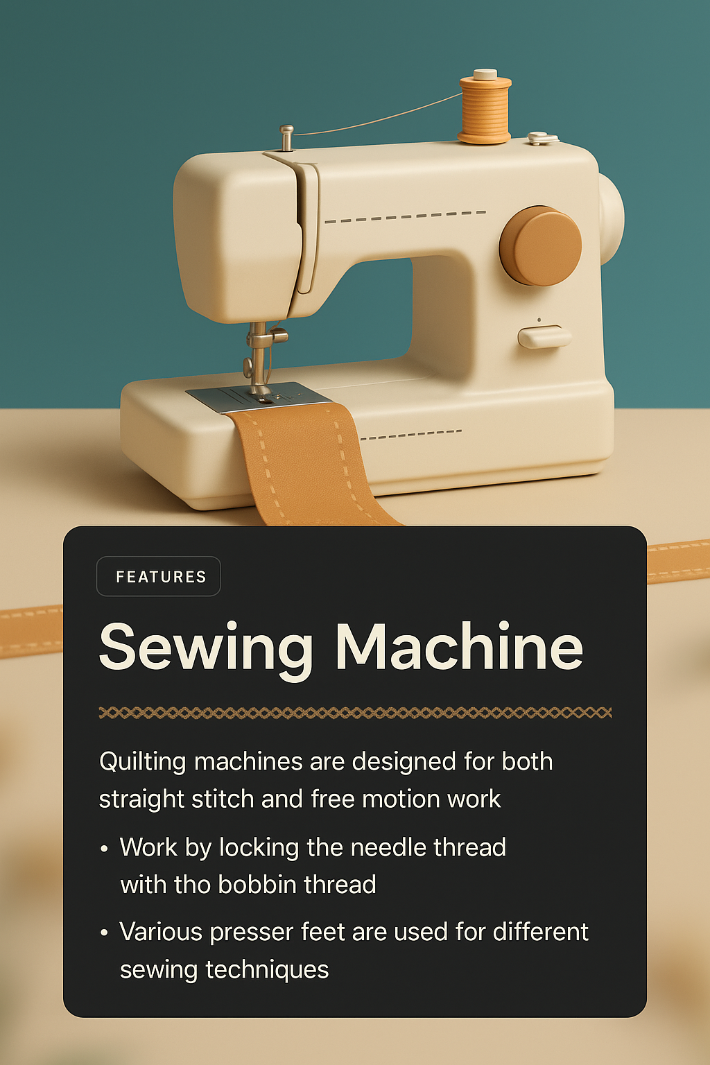/Collection: /by davooda/Type: PNG/A modern 3D illustration of a sewing machine on a gradient background, featuring a dark label that integrates seamlessly with the design, showcasing its various features.