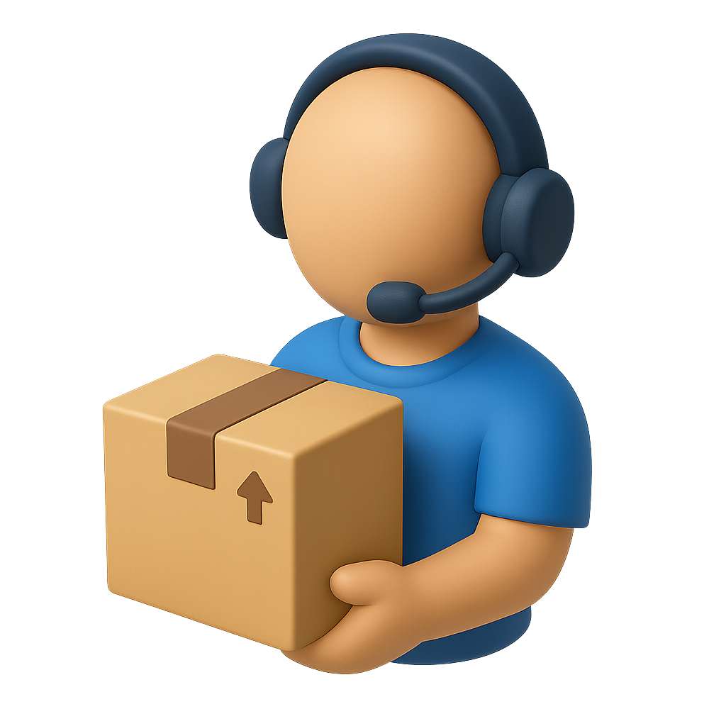 /Collection: /by davooda/Type: PNG/A 3D icon depicting a customer support representative holding a package. The figure is shown in a three-quarter view with a modern, volumetric design and a transparent background.
