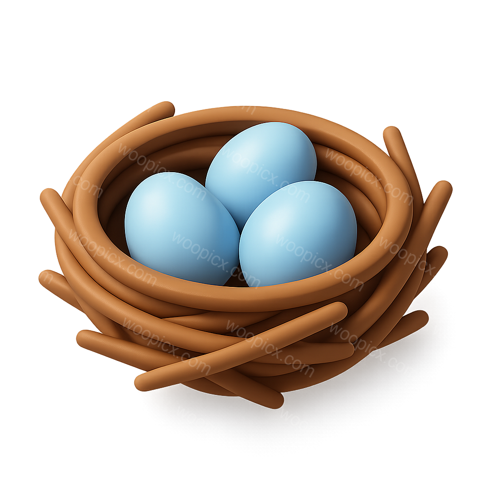 3D Icon of a Bird Nest with Eggs in Isometric View