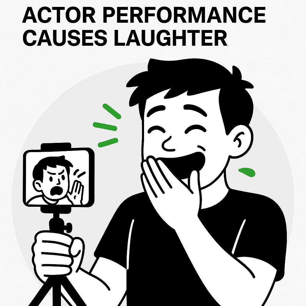 /Collection: /by davooda/Type: PNG/A playful illustration depicting an actor performing humorously, capturing the audience's laughter through a smartphone. Ideal for social media or entertainment-related content.