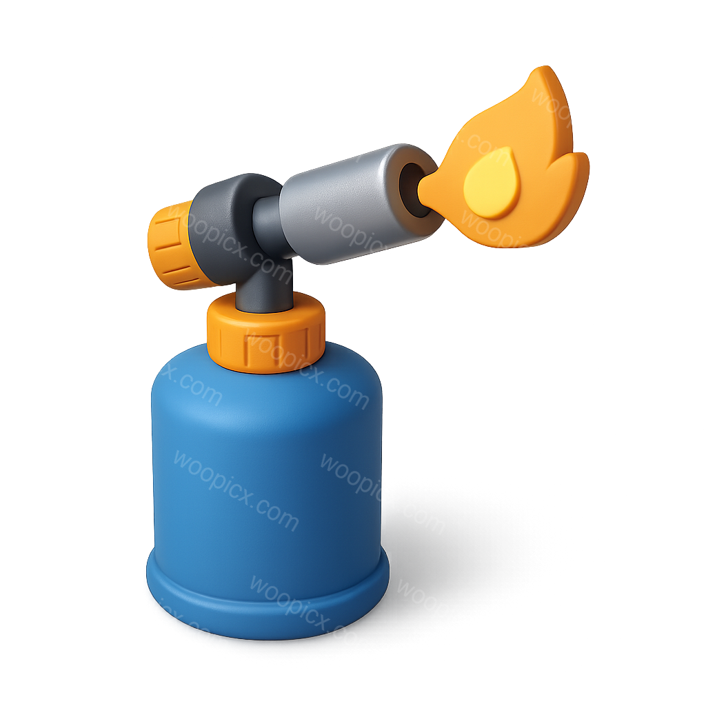 A stylized 3D blowtorch icon designed with a transparent background. It features a blue tank, orange accents, and a flame emitting from the nozzle, presented in a three-quarter isometric view.