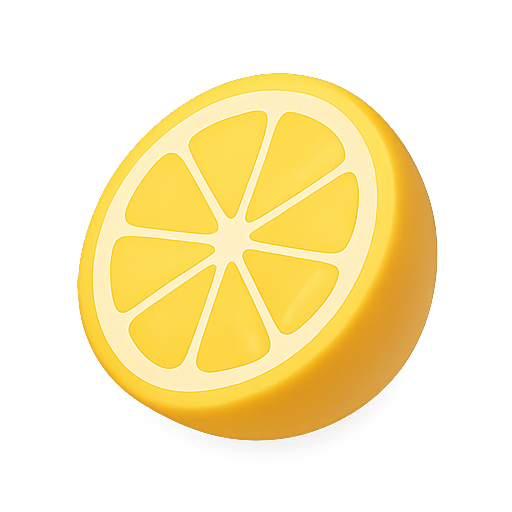 A vibrant and playful graphic of a lemon slice, designed as a 3D icon. Ideal for food-related themes, branding, or playful visual content.