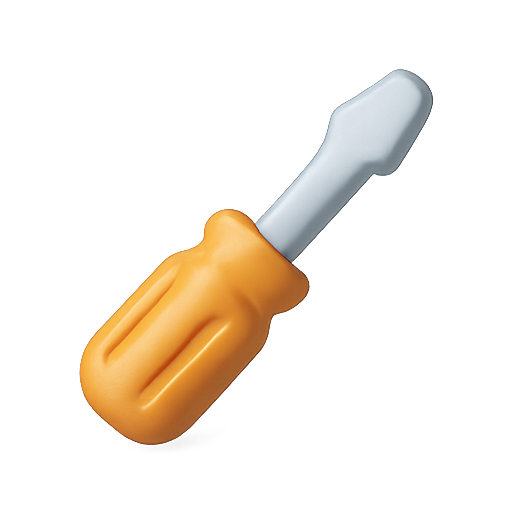 A detailed graphic representation of a screwdriver featuring a bright orange handle and a metallic blade, suitable for tool-related applications and educational materials.
