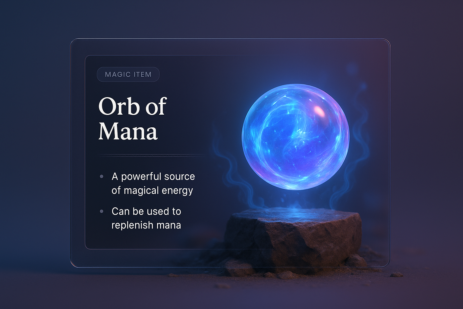 Enchanting 3D Illustration of a Mana Stone with Magic Source Info