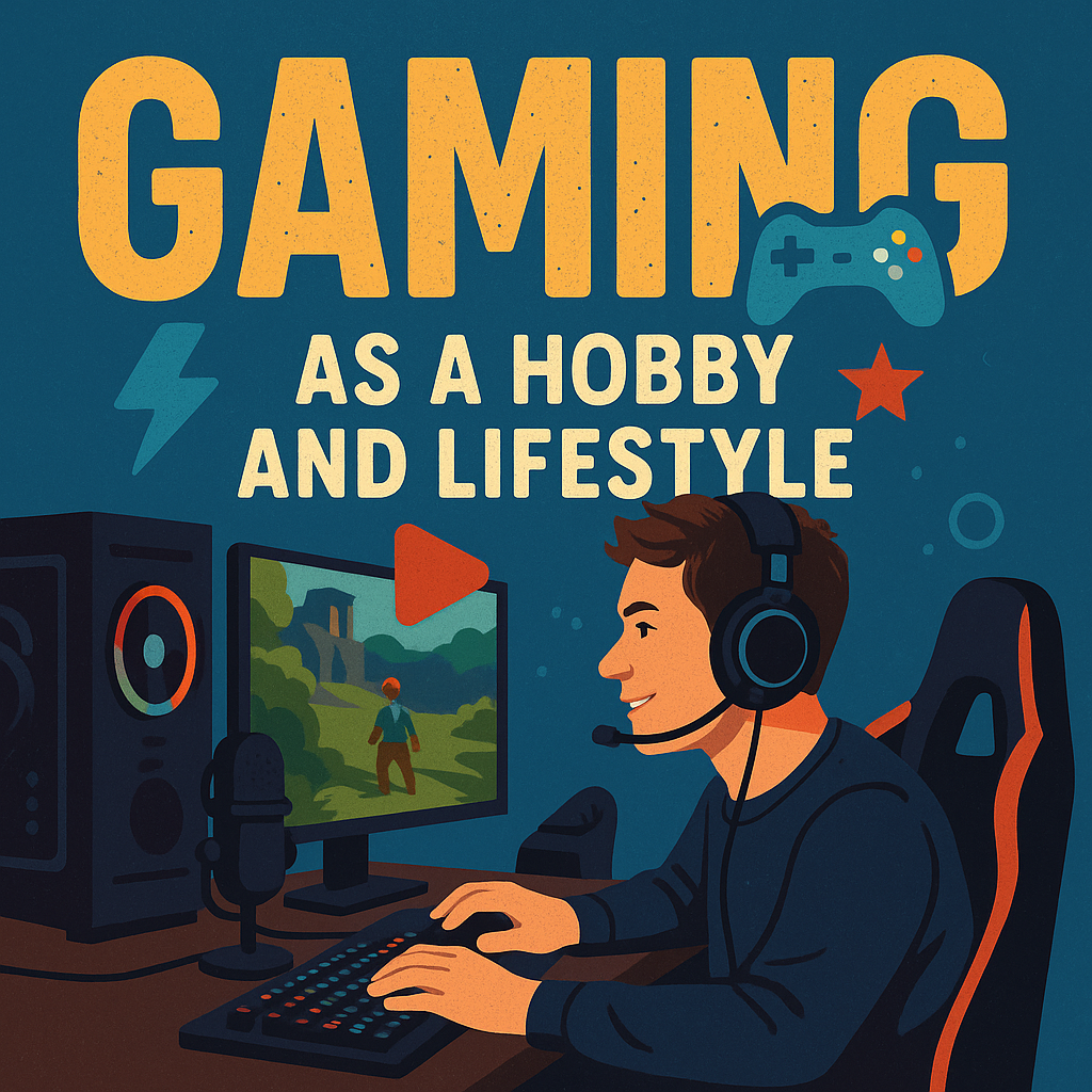 Vibrant digital illustration showcasing a gamer enjoying video games, emphasizing gaming as a hobby and lifestyle. Perfect for gaming-related content.