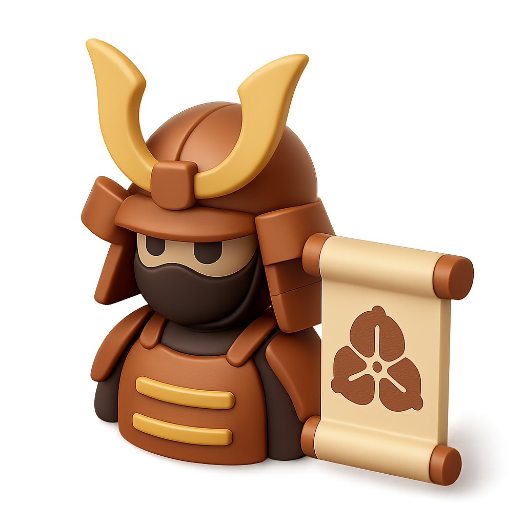 Stylized 3D Samurai Icon with Gavel and Scroll
