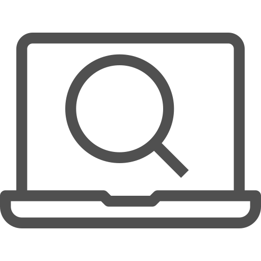 outline simple icon: analytics, computer, data analysis, laptop, magnifying glass