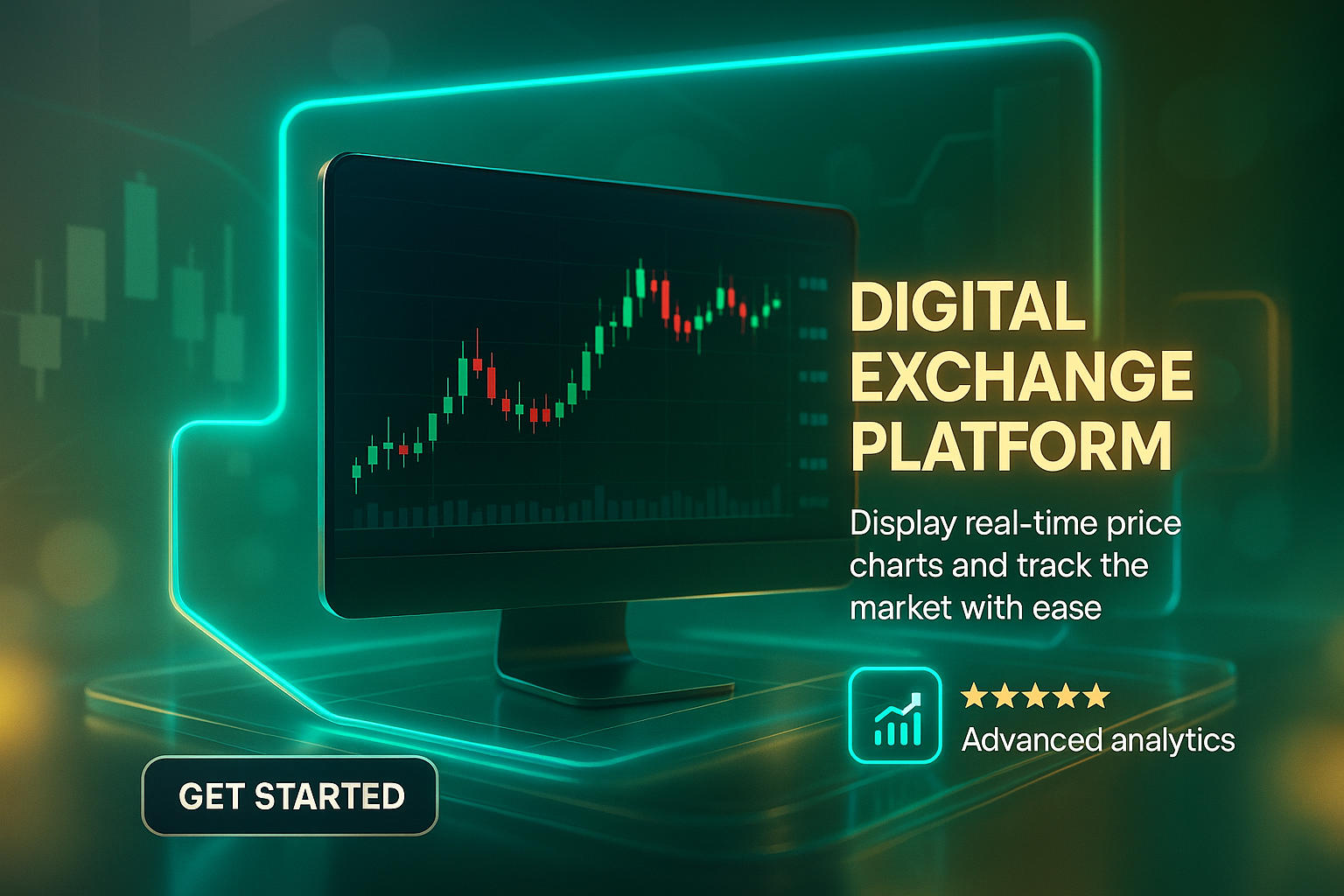 /Collection: /by davooda/Type: PNG/Modern promotional graphic for a digital exchange platform featuring a computer monitor with real-time price charts, ideal for marketing advanced trading tools.