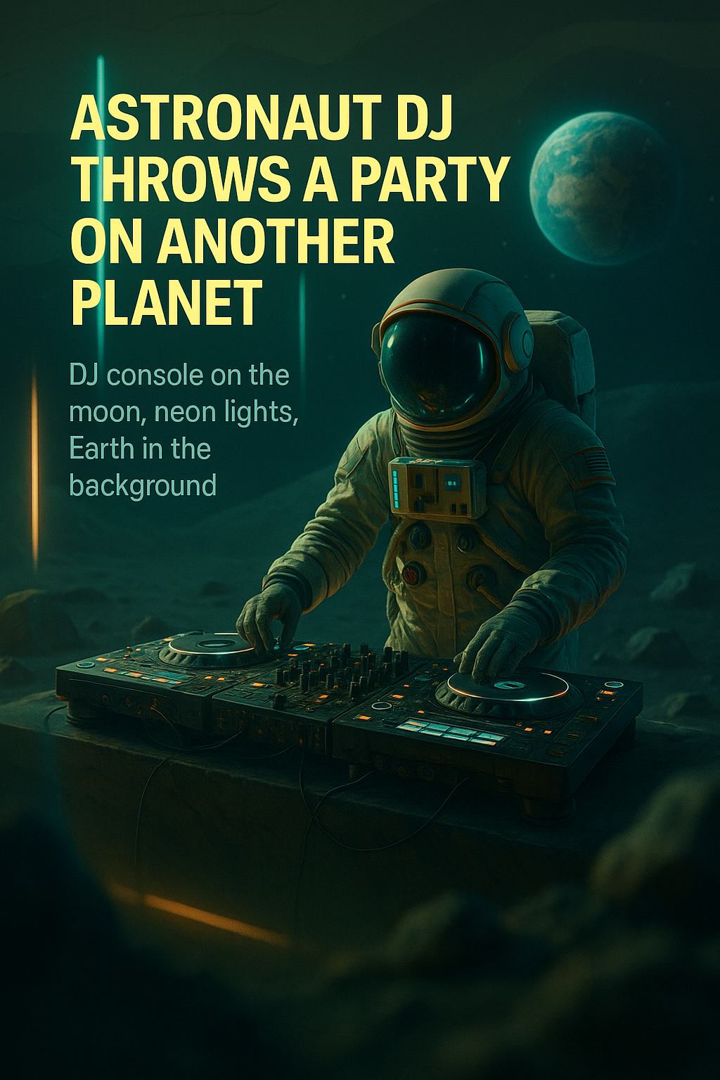 Futuristic Illustration of an Astronaut DJ on the Moon