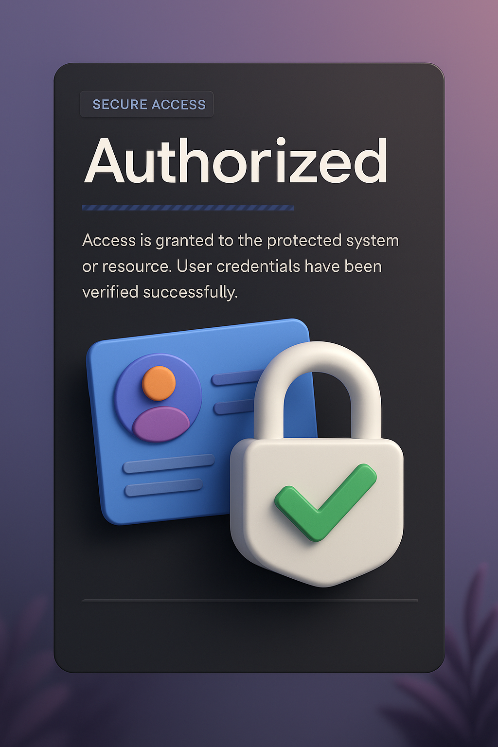/Collection: /by davooda/Type: PNG/A visually engaging 3D illustration depicting secure access. Features a lock and user credentials card integrated with a dark background, emphasizing the theme of authorization.