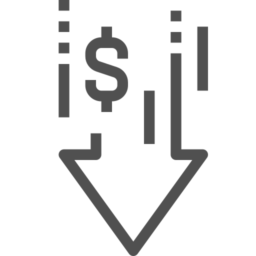outline simple icon: cost reduction, decreasing trend, dollar sign, downward arrow, economics