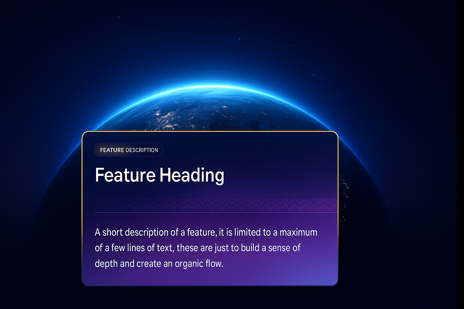 A captivating 3D illustration showcasing Earth from space, glowing against a dark background. The design features a gradient backdrop and an integrated feature block with text.