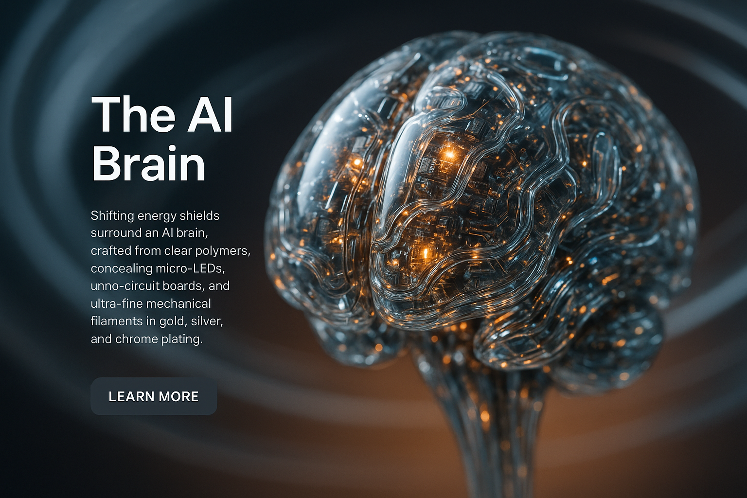 Hyperrealistic AI Brain with Energy Shields and Glowing Micro-LEDs
