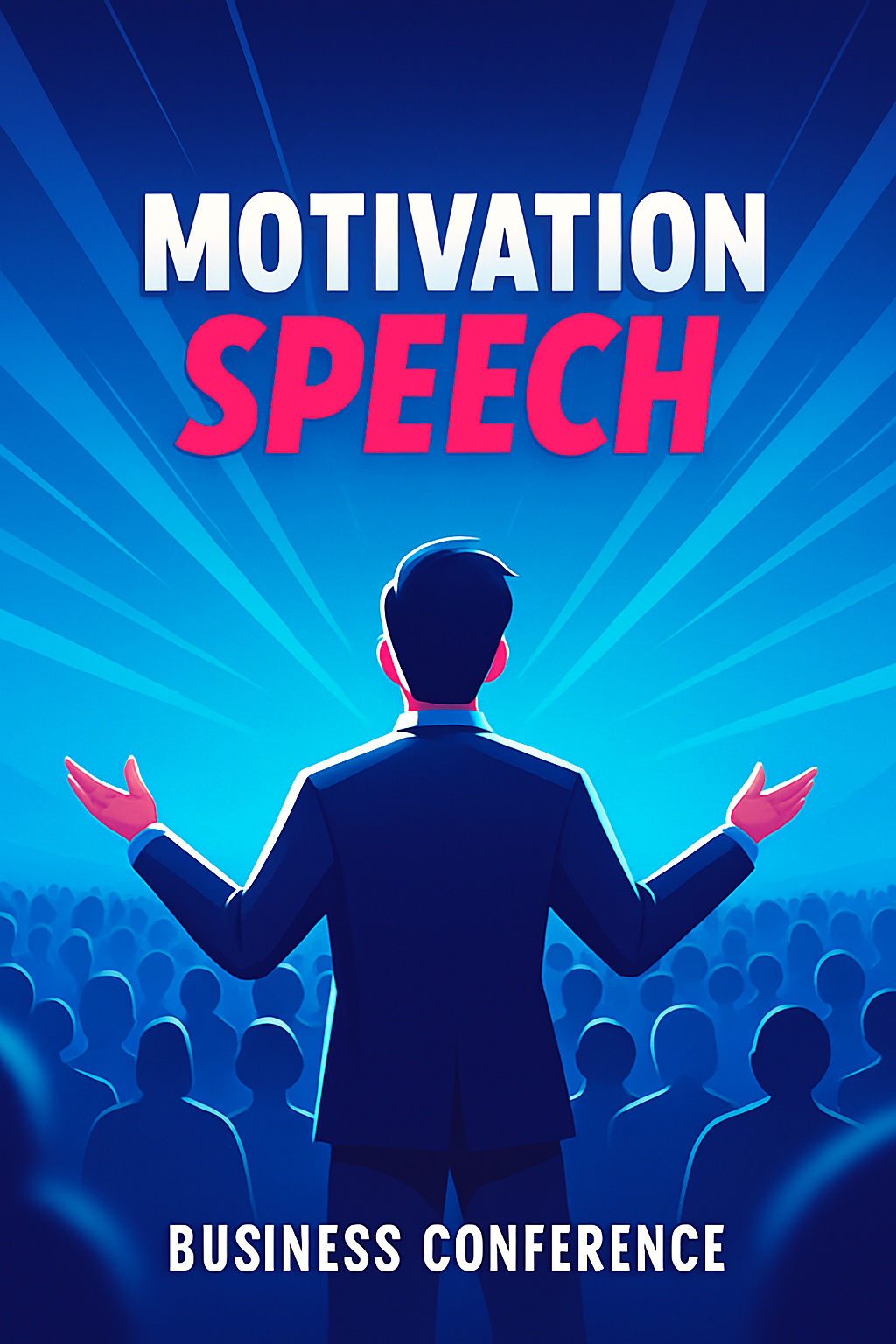 /Collection: /by davooda/Type: PNG/A back view of a motivational speaker on stage, engaging an audience with dynamic lighting and visual elements that enhance the atmosphere of a business conference.