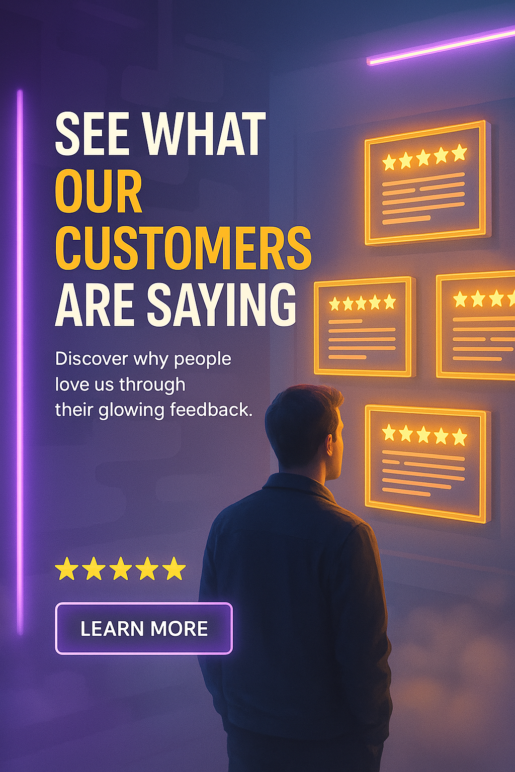 Customer Testimonials Promotion with Neon Accents