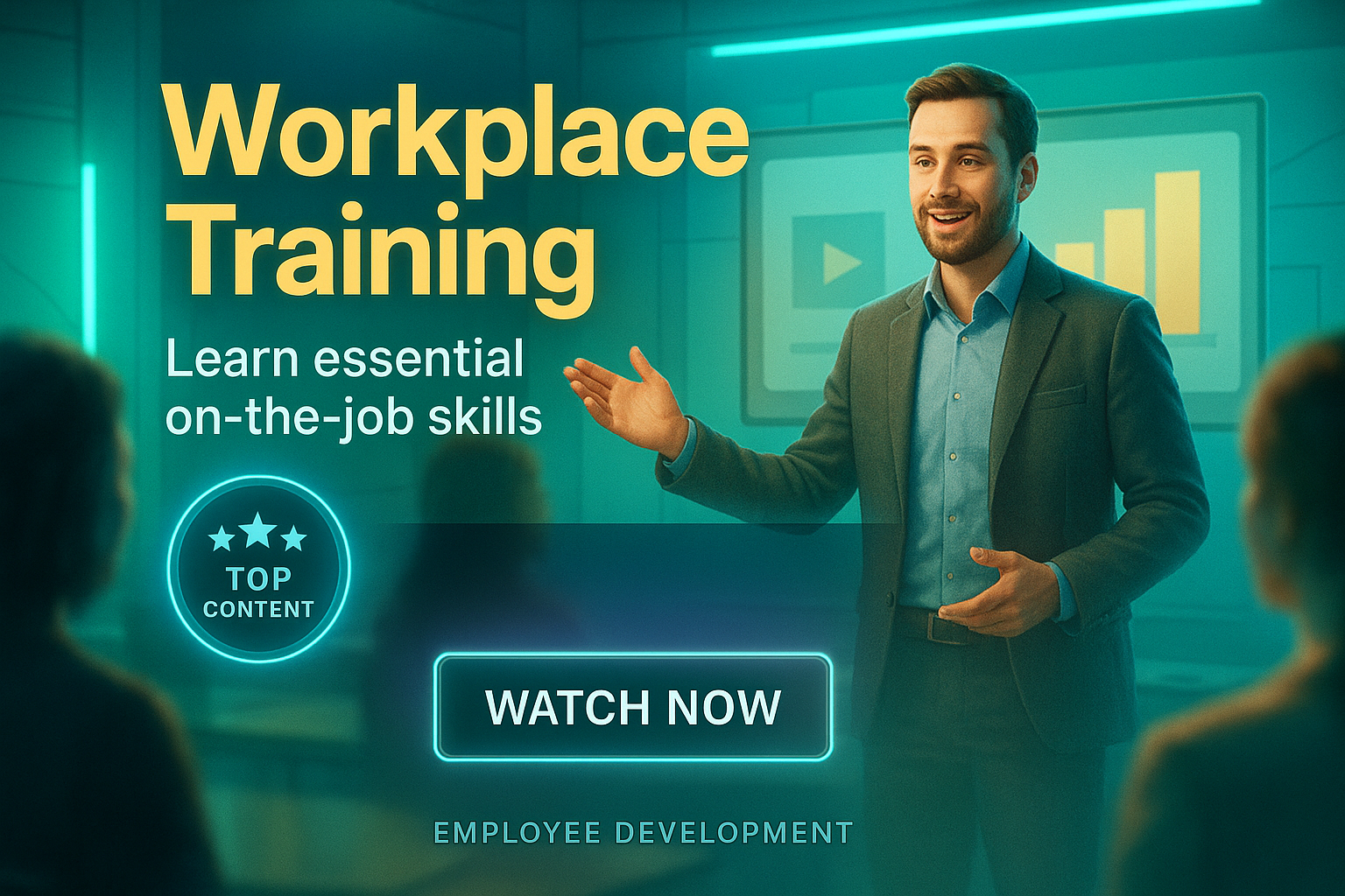 /Collection: /by davooda/Type: PNG/Engaging promotional graphic for workplace training featuring a speaker presenting skills development. The modern design is aimed at professionals seeking employee development.