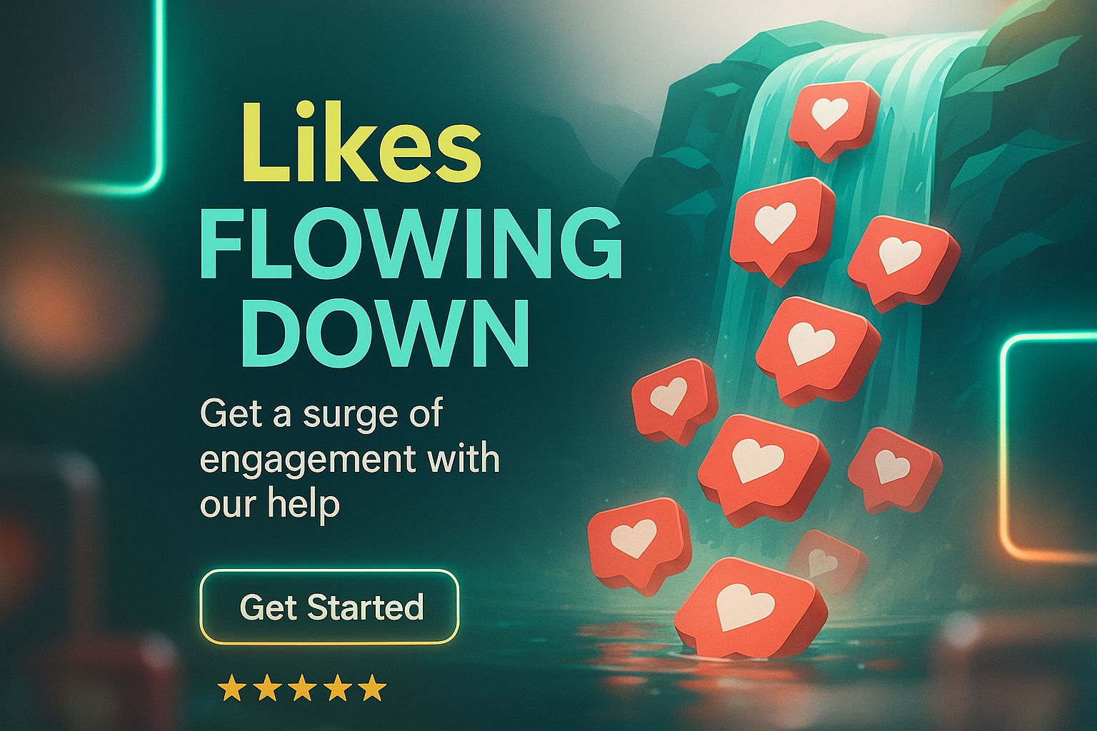Engaging Social Media Promotion Graphic with Flowing Likes