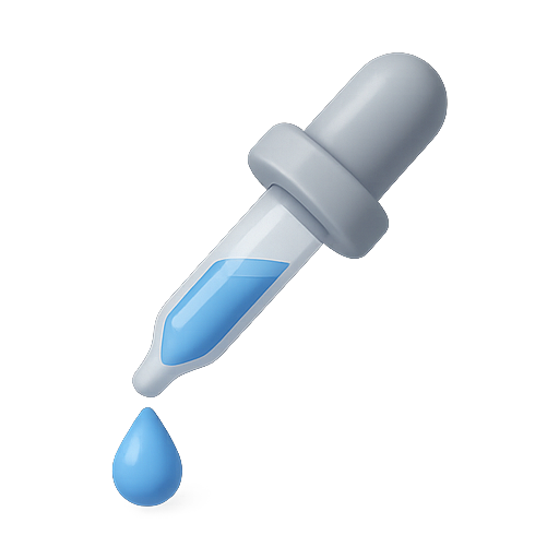 A modern graphic representation of a dropper filled with blue liquid, ideal for medical or scientific contexts. The design features smooth lines and a clean aesthetic.