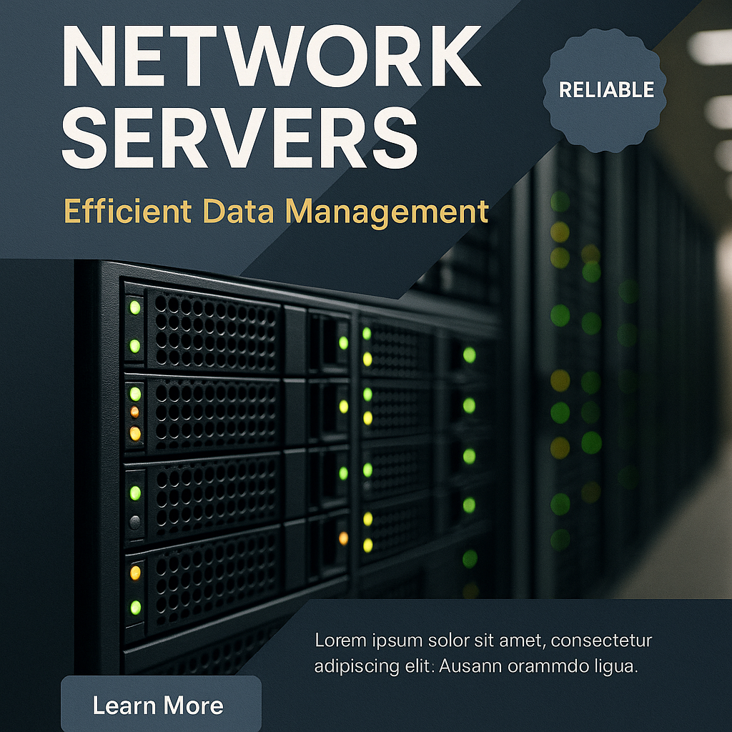 /Collection: /by davooda/Type: PNG/An image showcasing a row of network servers adorned with glowing LED lights. The composition features layered elements with a focus on realism and a professional aesthetic.