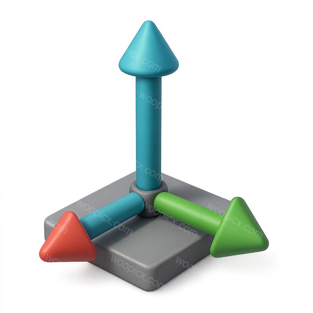 /Premium/Collection: /by davooda/Type: PNG/A visually striking 3D icon depicting three arrows in different colors, representing axes in a three-dimensional space. The design features a sleek, isometric style with a transparent background.