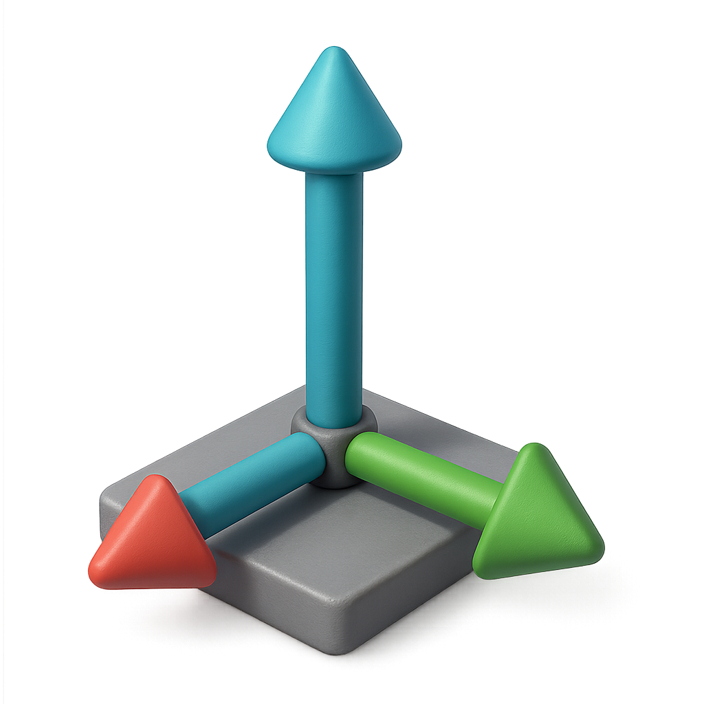 /Collection: /by davooda/Type: PNG/A visually striking 3D icon depicting three arrows in different colors, representing axes in a three-dimensional space. The design features a sleek, isometric style with a transparent background.