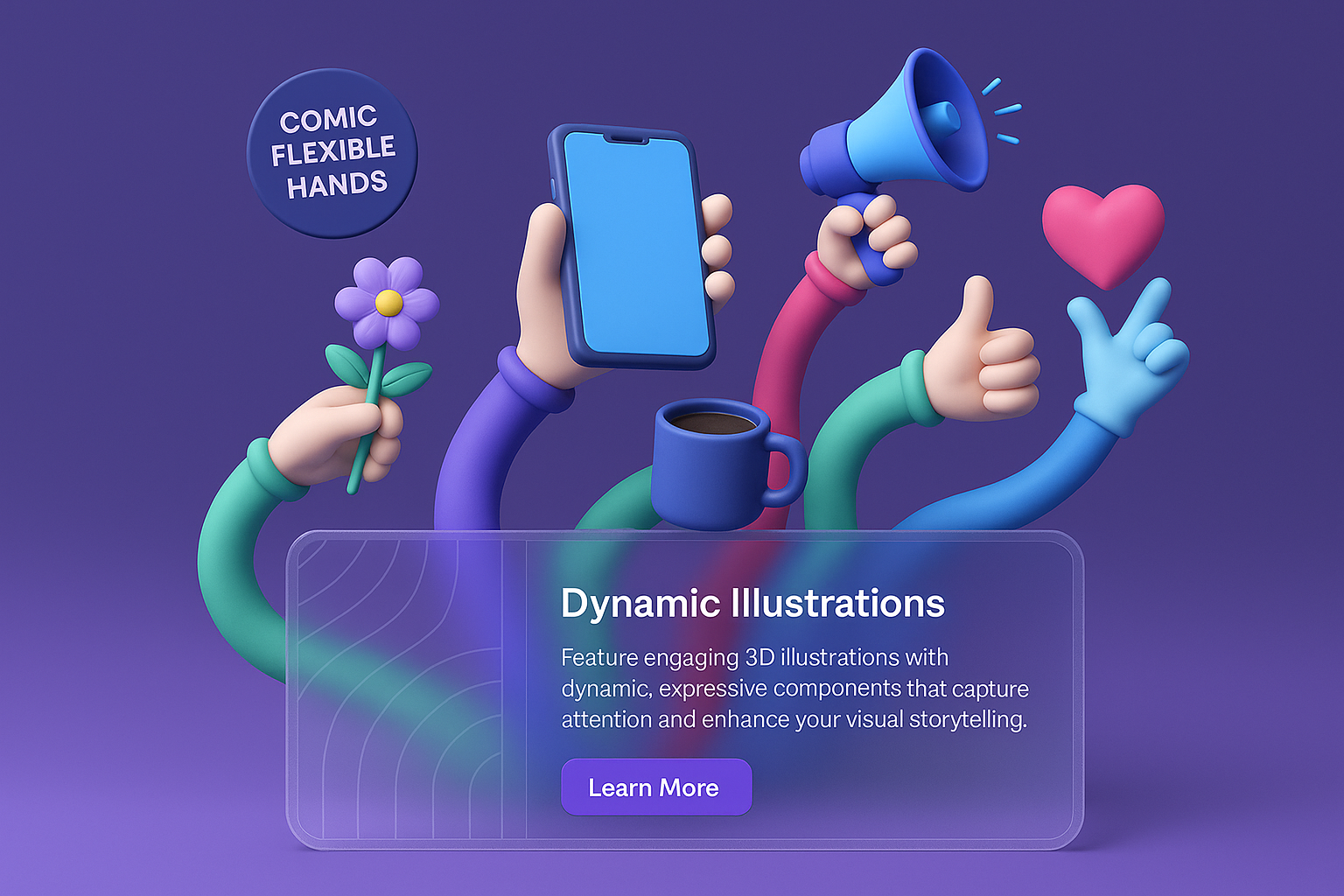 Dynamic Visuals with Flexible Comic Hands and Vibrant Elements