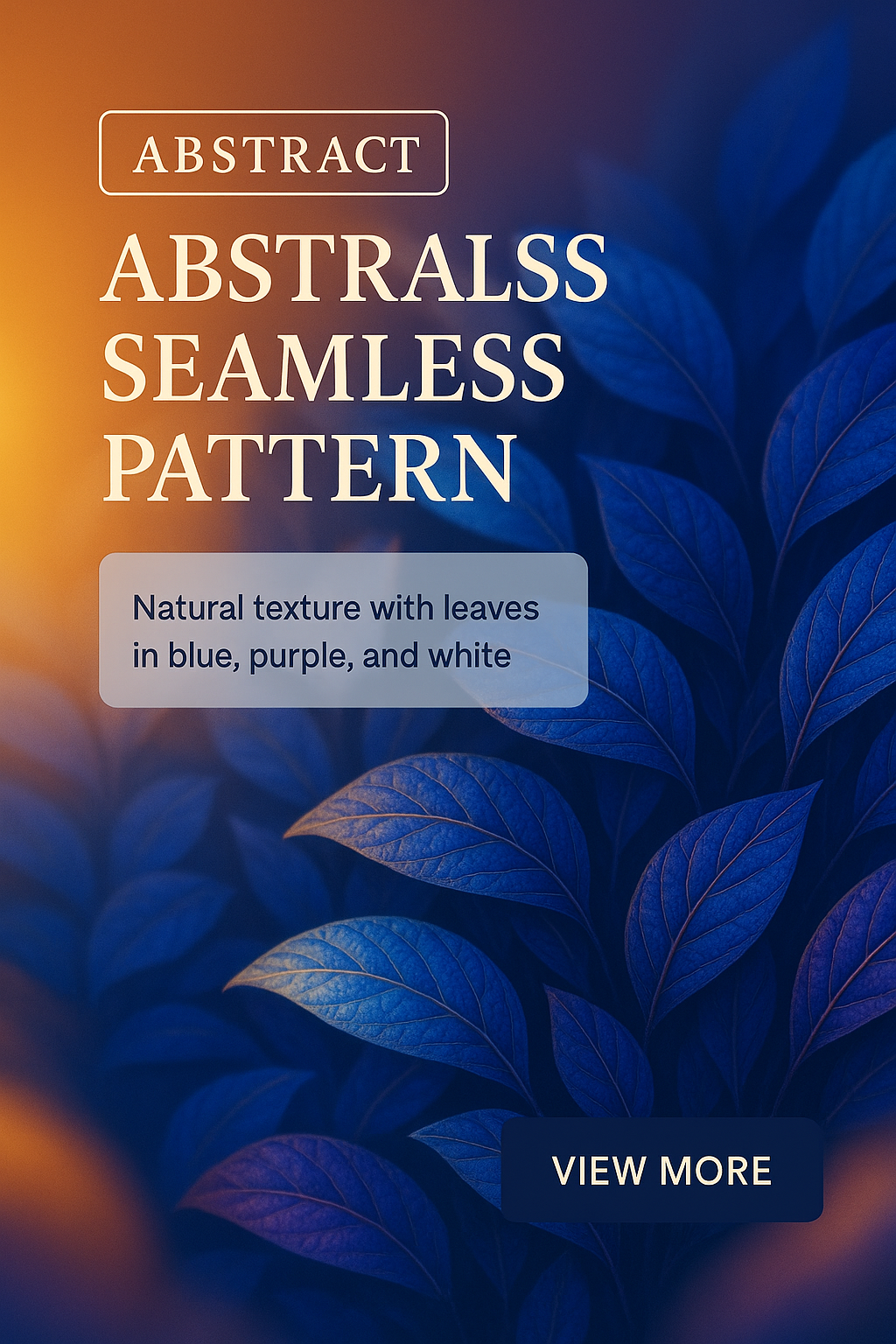 A graphic showcasing an abstract seamless pattern featuring leaves in shades of blue, purple, and white. Ideal for backgrounds or design projects.