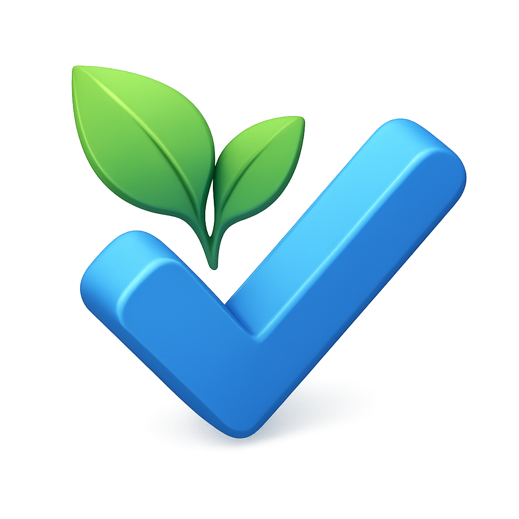 3D Eco-Friendly Checkmark Icon with Leaves