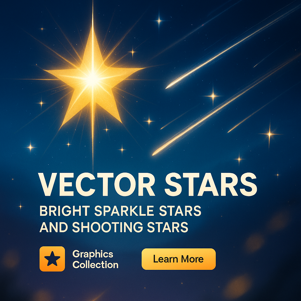 /Collection: /by davooda/Type: PNG/An engaging graphic featuring bright vector stars and shooting stars against a deep blue background. The design emphasizes realism with a striking star at the center and subtle depth elements.