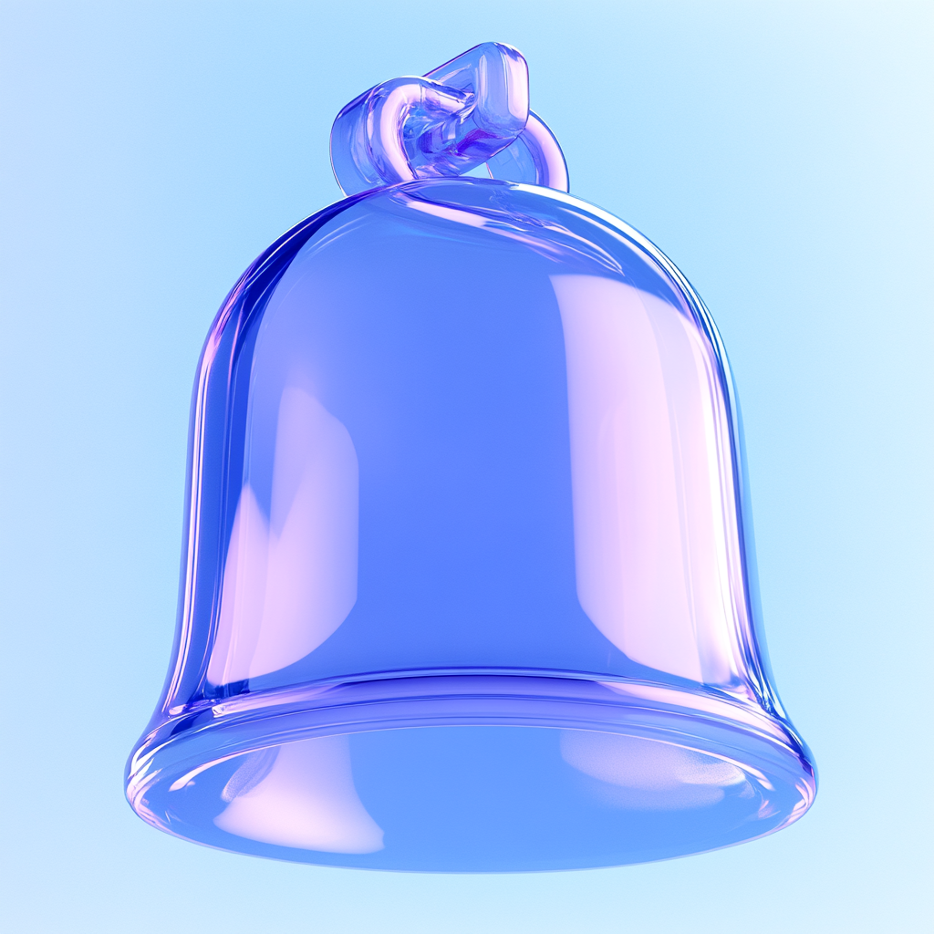 A sleek and modern 3D rendering of a bell with a glossy finish, suitable for digital applications. The soft lighting enhances its reflective surface, making it visually appealing.