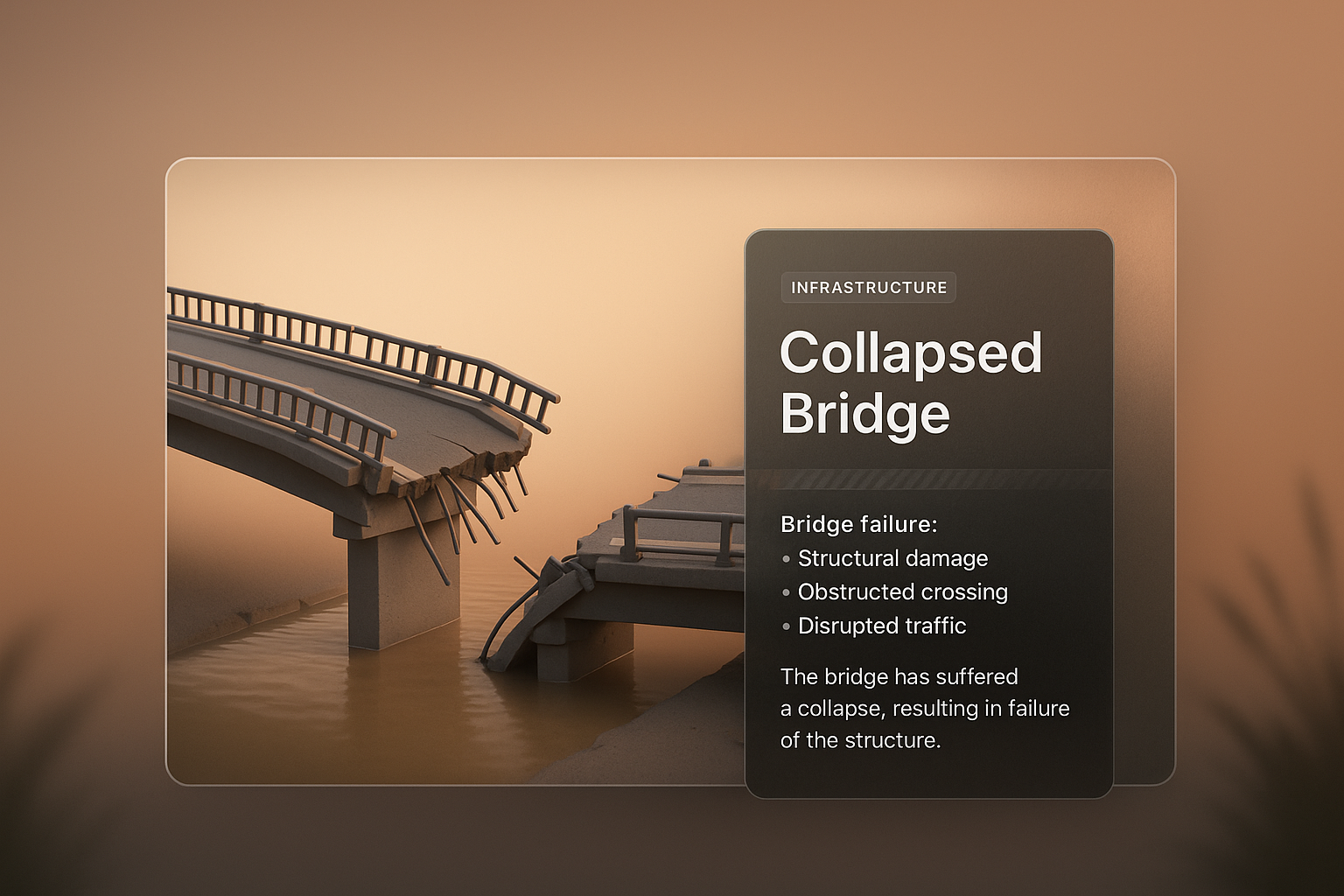 Visual Representation of a Collapsed Bridge with Design Elements