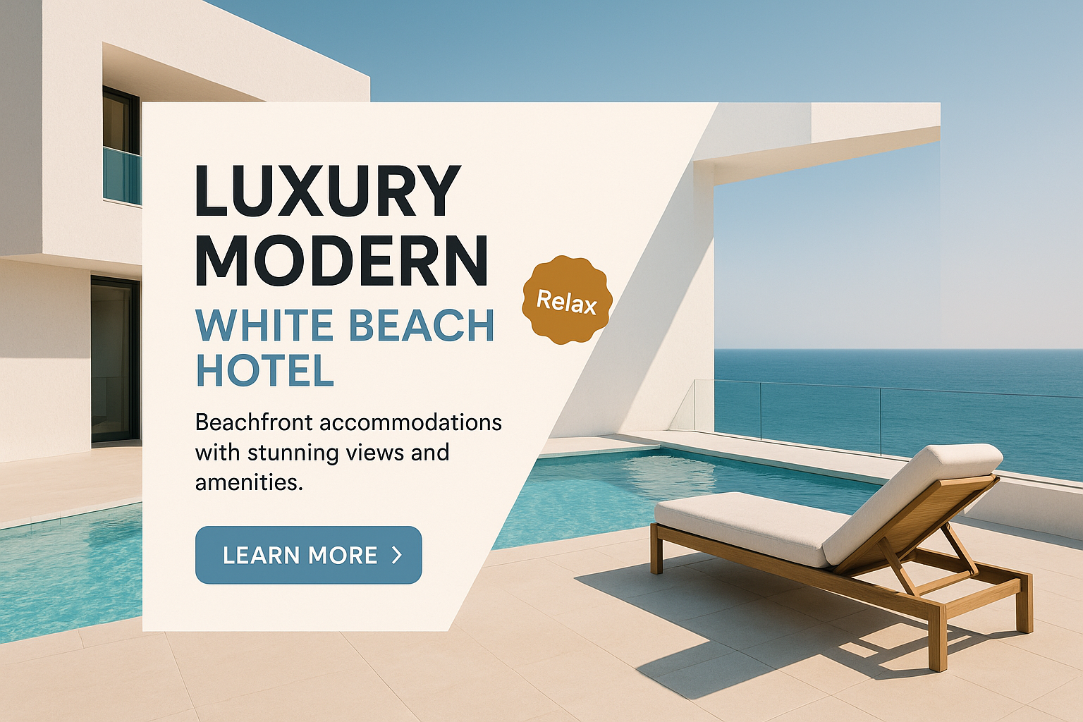 Luxury Beach Hotel Promotional Graphic with Modern Design Elements