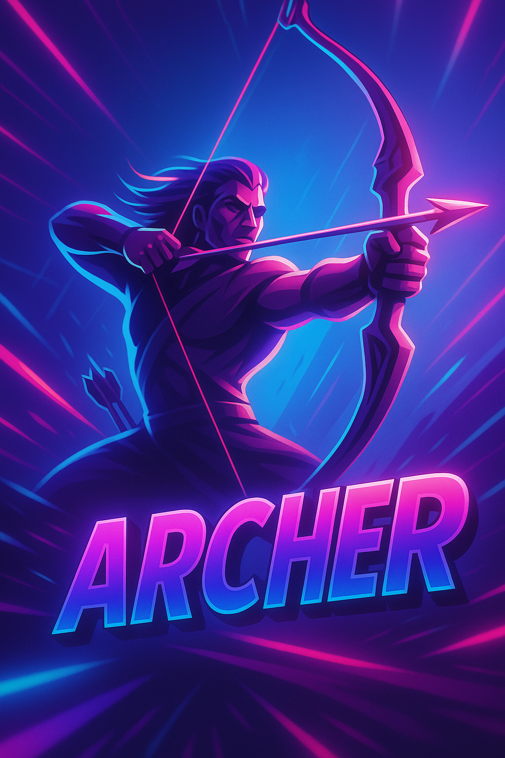 Dynamic Neon Archer Illustration with Vibrant Colors