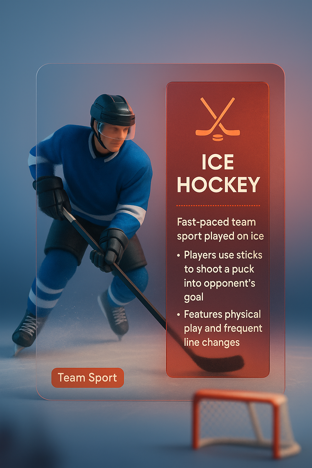 /Collection: /by davooda/Type: PNG/A dynamic 3D illustration of an ice hockey player in action, featuring a transparent overlay with text and graphic elements. The design includes a gradient background and emphasizes the sport's fast-paced nature.