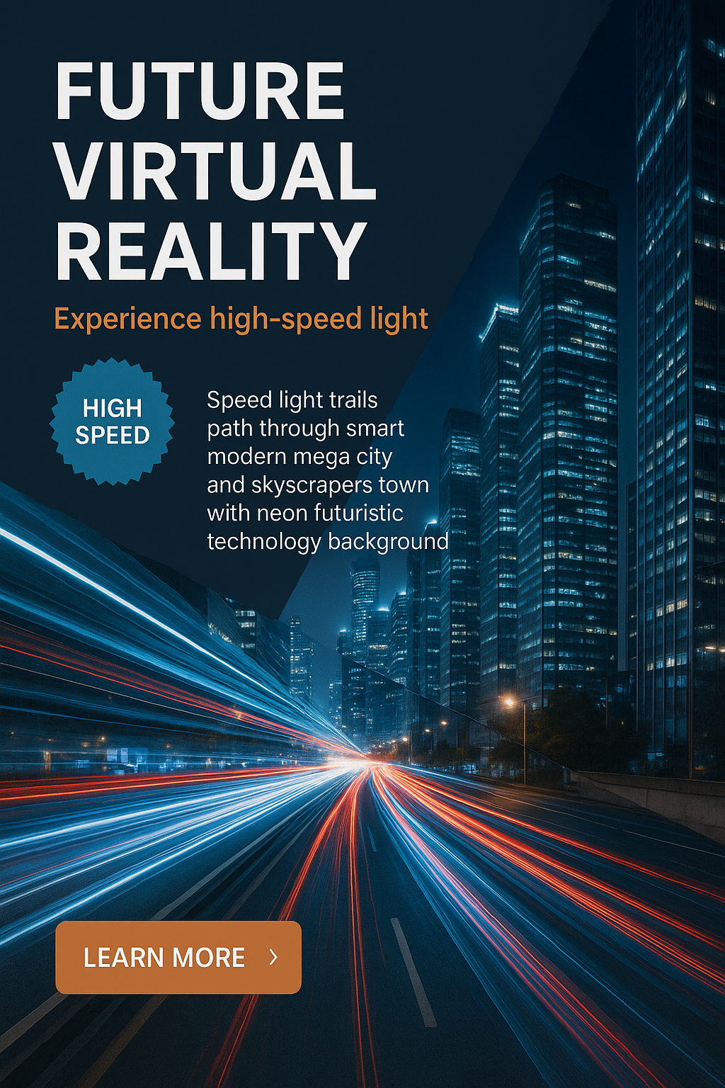 /Collection: /by davooda/Type: PNG/A vibrant cityscape showcasing speed light trails weaving through a modern mega city. Skyscrapers illuminated with neon colors create a futuristic technology backdrop.