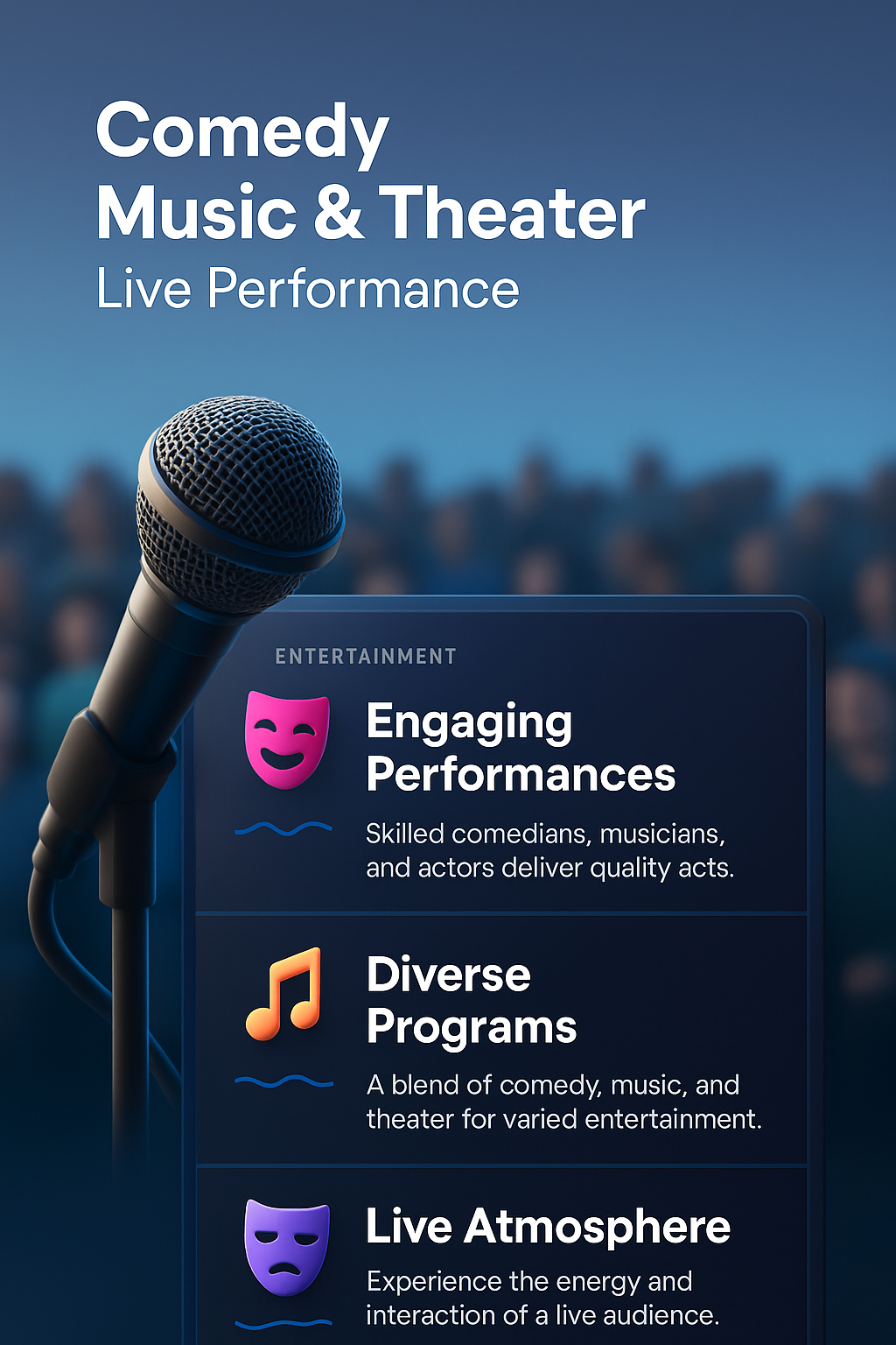 /Collection: /by davooda/Type: PNG/A microphone in focus, set against a blurred audience. The image highlights a vibrant live performance atmosphere, showcasing elements of comedy, music, and theater.