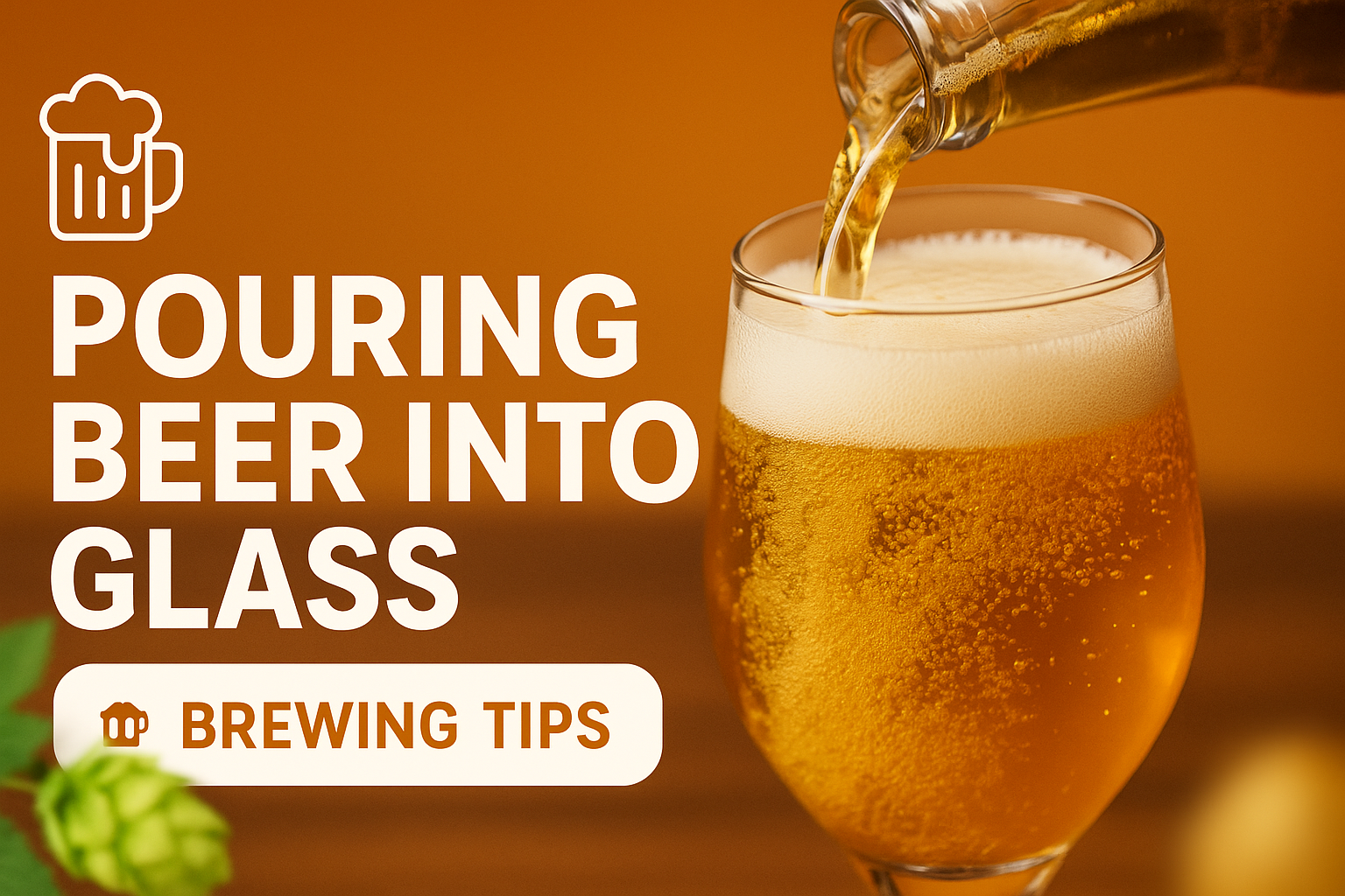 Engaging graphic showcasing the process of pouring beer into a glass, ideal for brewing tips and tutorials. The warm color palette enhances the inviting theme.
