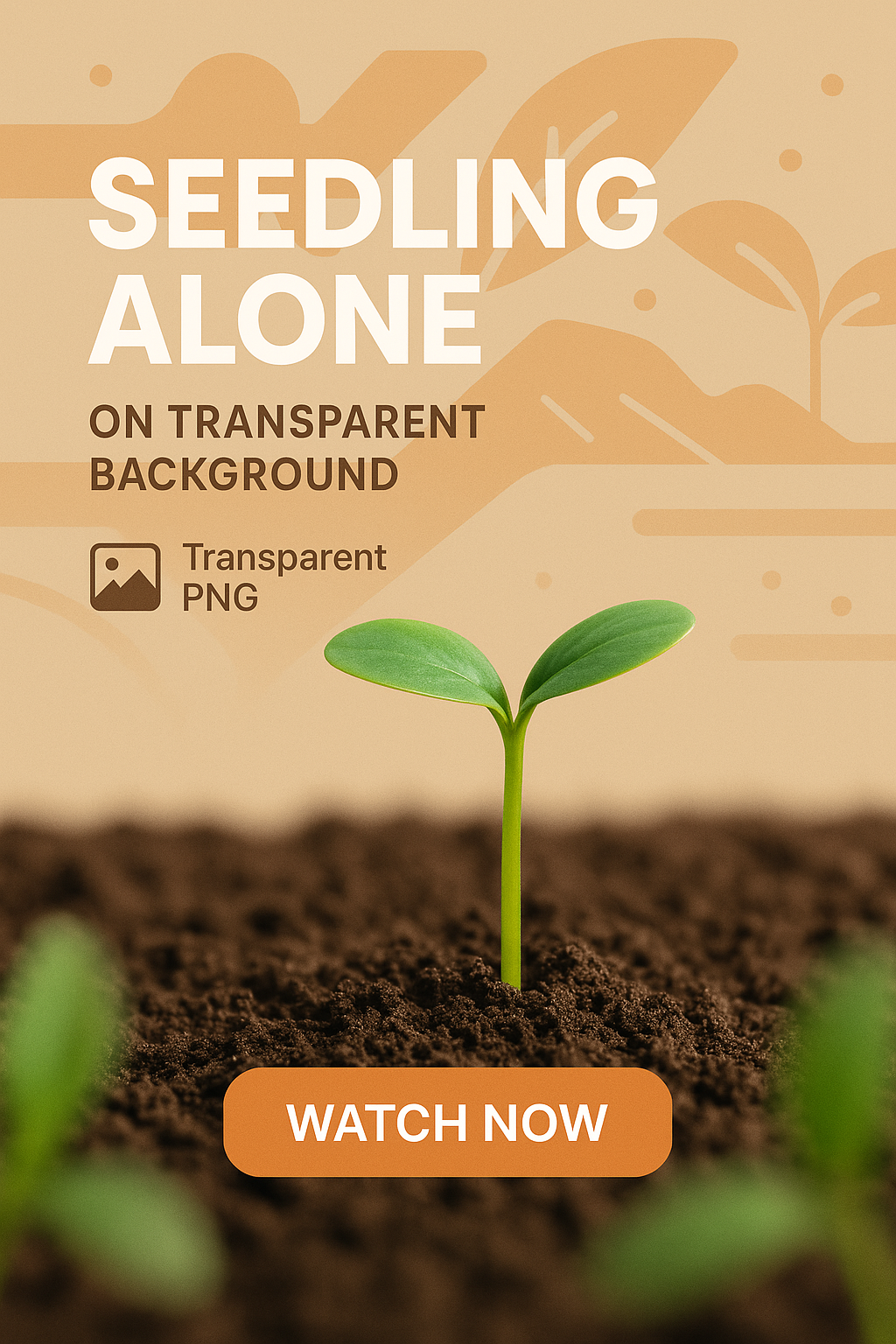 /Collection: /by davooda/Type: PNG/A detailed image of a single seedling emerging from dark soil, set against a transparent background. Ideal for gardening, nature, or eco-friendly themes.