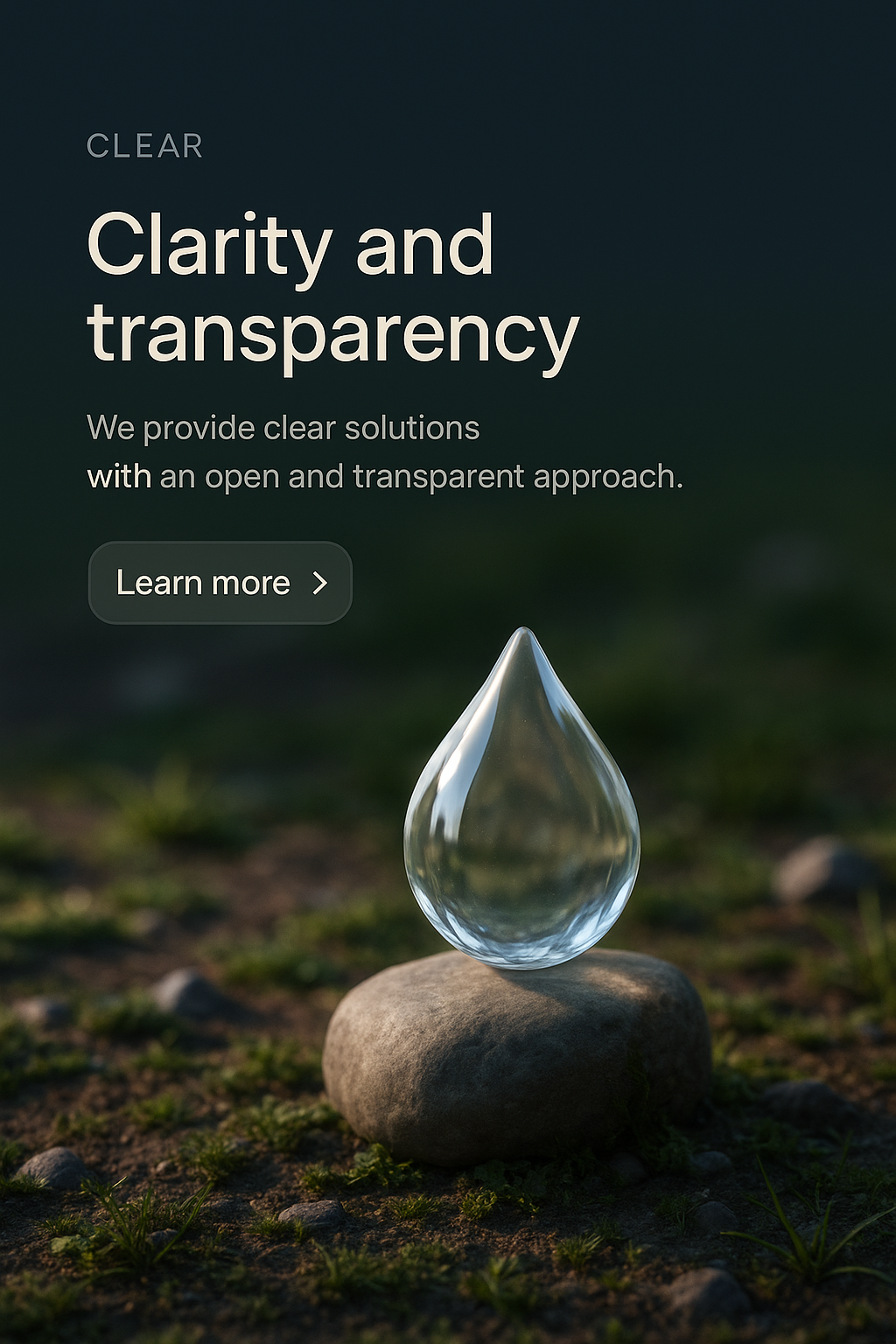 /Collection: /by davooda/Type: PNG/A detailed 3D scene featuring a glass droplet on a stone, set against a dark gradient background. Text elements enhance the theme of clarity and transparency, creating an engaging visual.