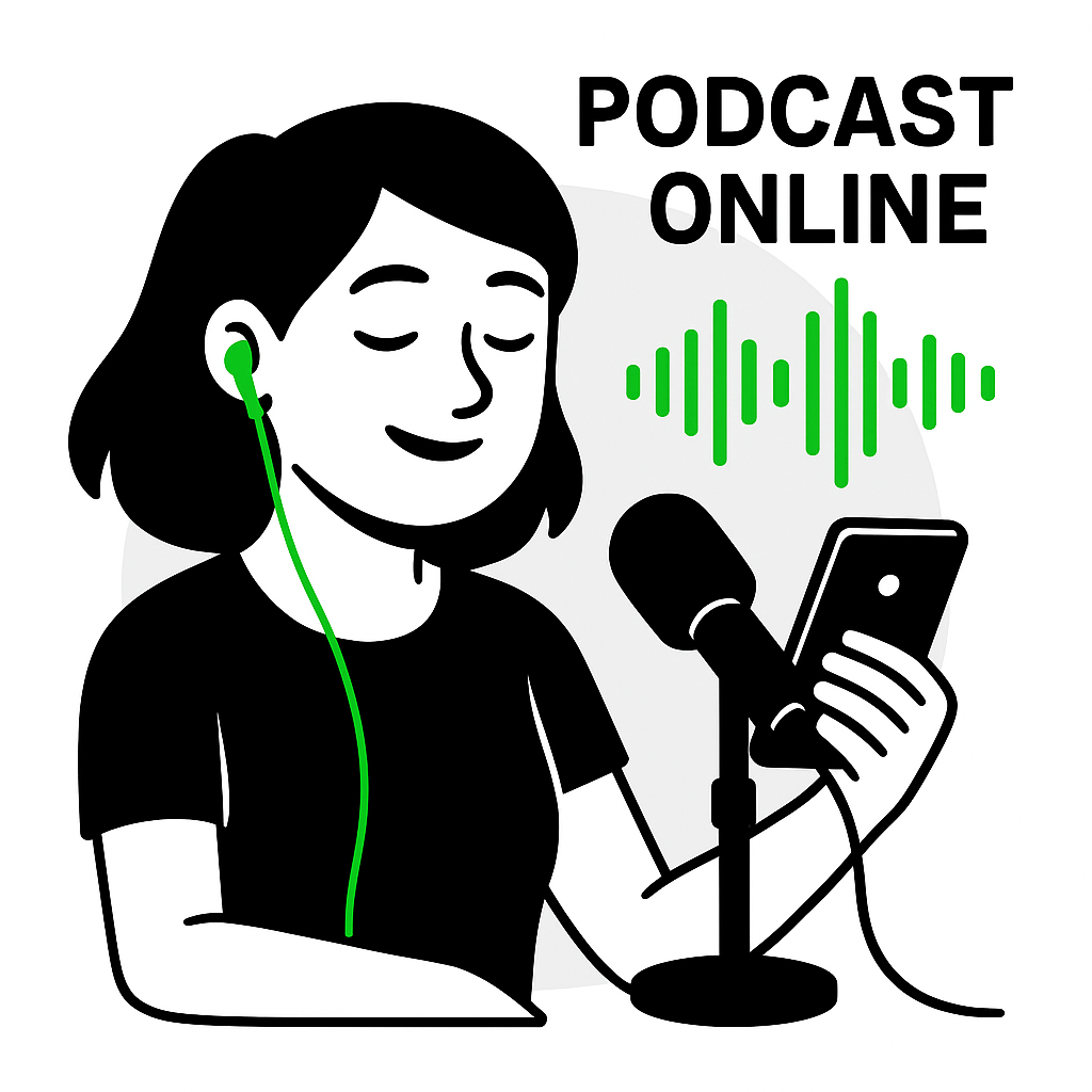 /Collection: /by davooda/Type: PNG/A minimalist graphic depicting a podcaster with headphones and a smartphone, conveying a modern online podcasting theme. Ideal for podcast promotion or digital media content.