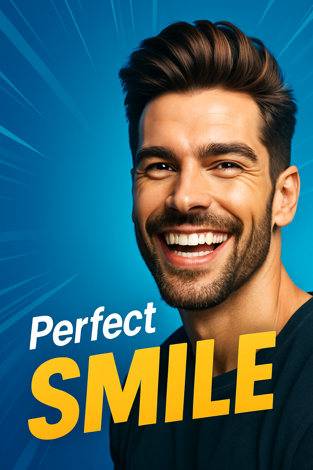Dental Marketing Graphic Featuring a Confident Smiling Individual