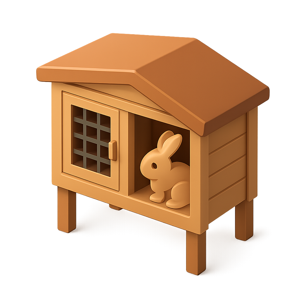 Stylized 3D Rabbit Hutch Icon with a Rabbit Inside