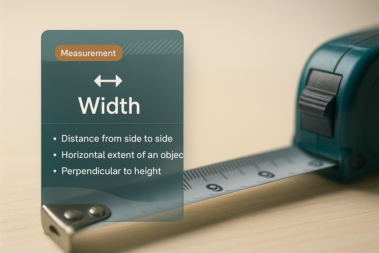 /Collection: /by davooda/Type: PNG/A web design featuring a stylish glass effect overlay with measurement details. The design includes a tape measure and a transparent label highlighting the term 'Width' with key descriptions.