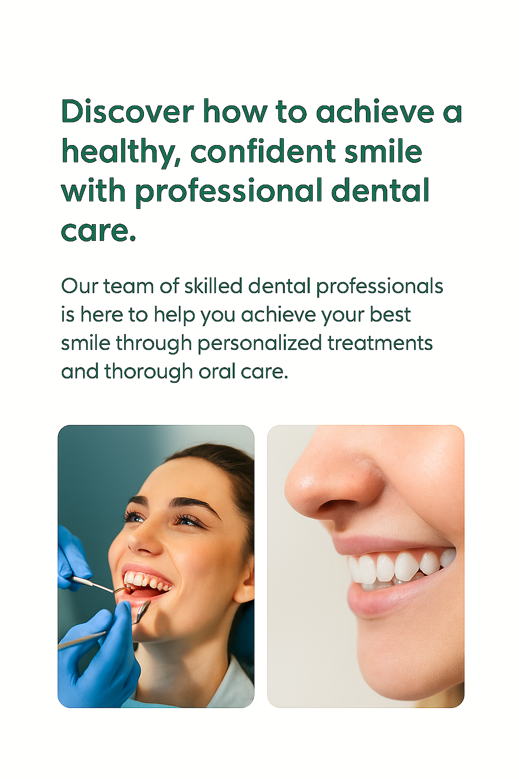 /Collection: /by davooda/Type: PNG/Engaging social media post showcasing dental professionals assisting patients. The design emphasizes healthy smiles and personalized care, appealing to potential clients seeking dental services.