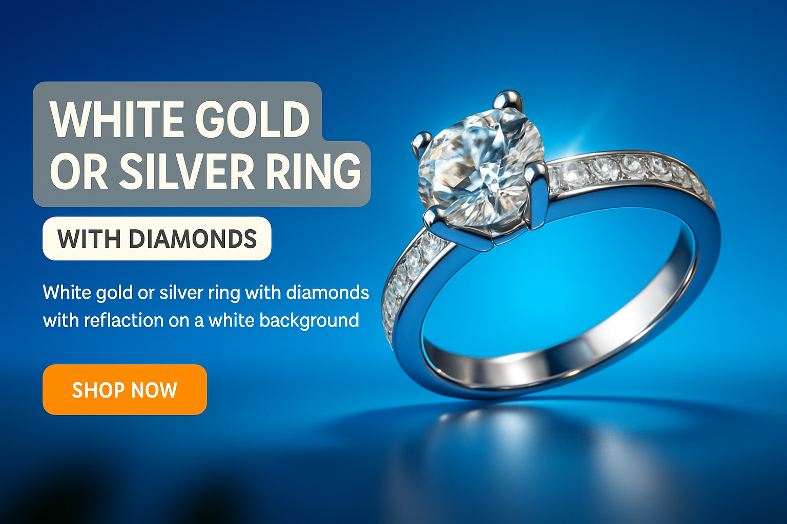 Elegant White Gold or Silver Ring with Diamonds for Jewelry Promotion
